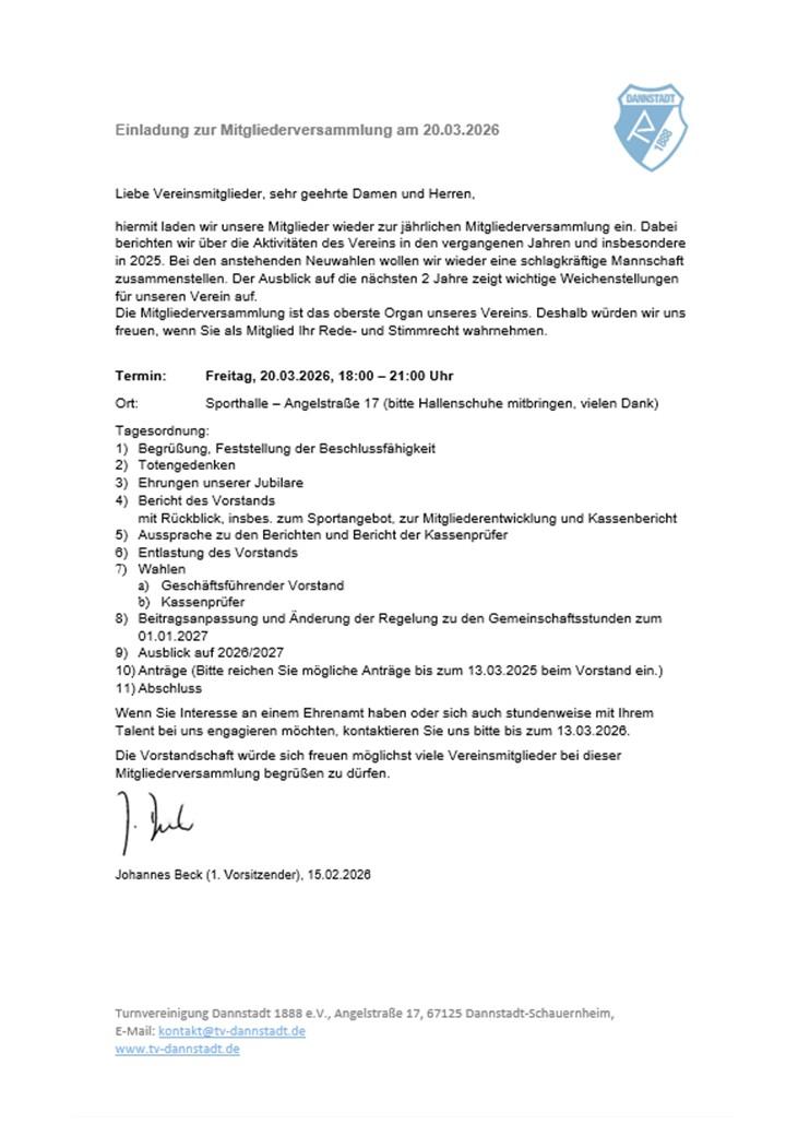 Einladung zur Mitgliederversammlung am 20.03.2026