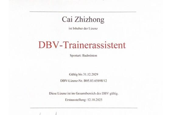 Zhizong erhält Trainerlizenz für Badminton nach bestandener Prüfung