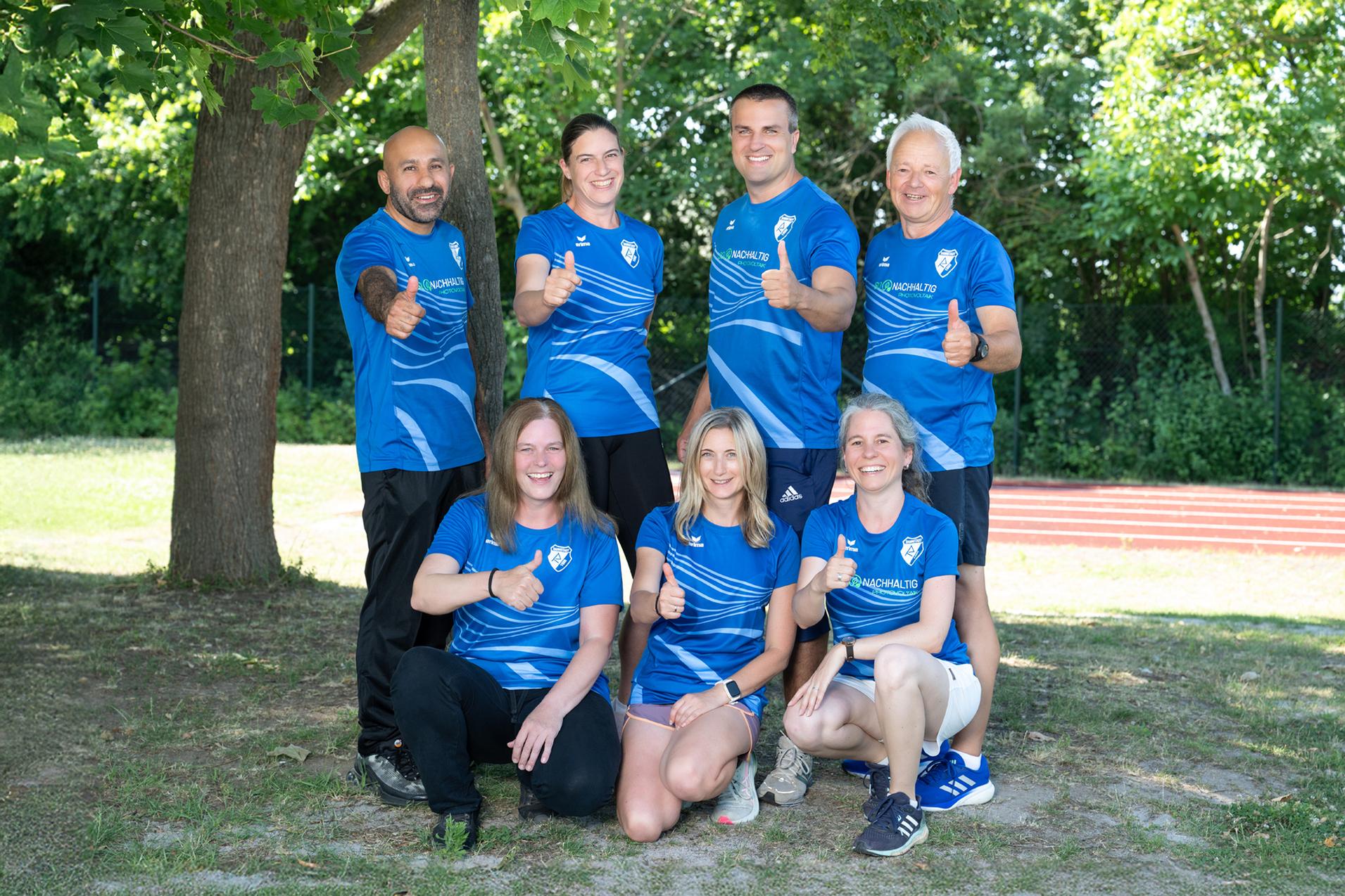 Es freuen sich auf Euch: Marion Flaucher, Julia Schmidt und Susanne Hutzel ( vordere Reihe knieend von links nach rechts) , Ahmad Hazime, Andrea Selinger, Daniel Graf und Klaus Pajurek ( hintere Reihe stehend von links nach rechts). Auf dem Bild fehlen Kristina und Steffen Gauweiler.