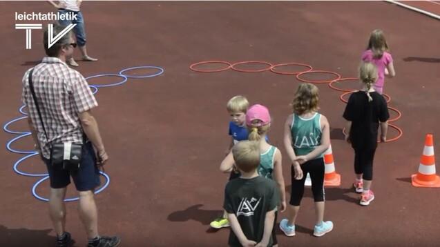 Mit dem Handabschlag wird das nächste Kind in den Parcour geschickt.